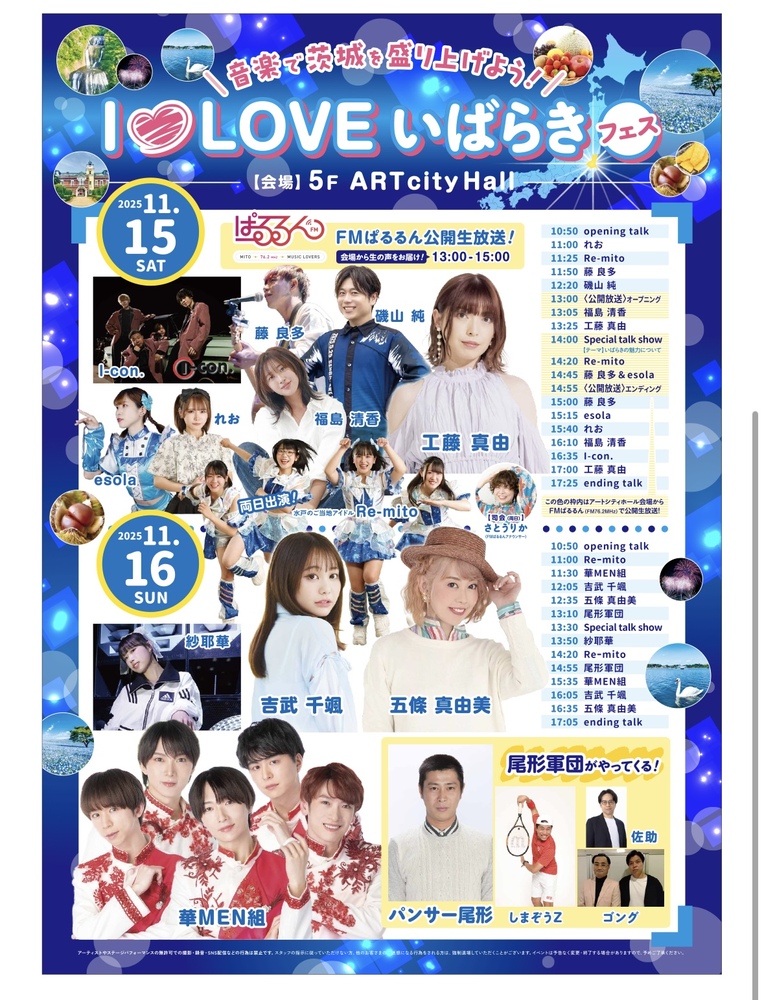 水戸オーパイベント schedule 2025/11/15(土) 13:00 - 水戸OPAアートシティホール5階 13時〜FMぱるるん公開放送!! いつも担当している番組next be tune 13:05〜、16:10〜演奏します! 是非生放送見にきてね! URLをコピーする 報告する