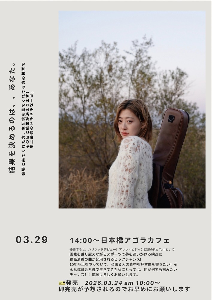 その映画の内容がスポーツで夢を追いかける内容で、自分に重なる部分があり絶対にこの映画の歌に携わりたいと思ってます夢に近づく大きな一歩になります!